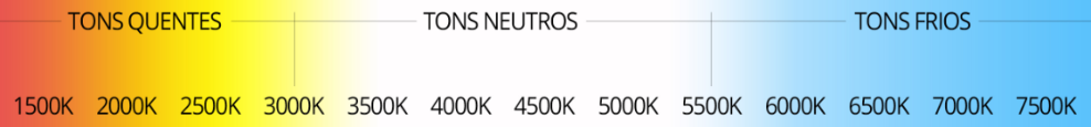 A temperatura da luz é indicada pela unidade Kelvin. Na seguinte escala pode consultar os diferentes tons: